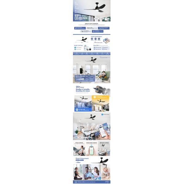 Efficient cooling and lighting: The 52-inch 3-blade ceiling fan features integrated LED lights that provide cooling and lighting in a single fixture. Powerful fans circulate air efficiently, while LED lights offer adjustable warm, natural, and cold white lighting options.