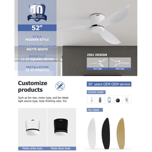 Modern 2-in-1 Ceiling Fan with Optional LED Light DC Motor ABS Blades Images |